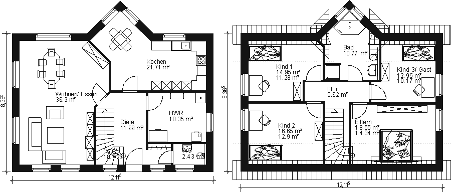 Wohnflächen ergeben (bei gleich bleibenden Außenmaßen)!